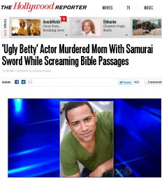O ator Michael L. Brea, 31 anos, que apareceu em episódios do seriado Ugly Betty, matou a mãe, Yannick, de 55 anos, com uma espada samurai enquanto pronunciava passagens bíblicas, diz a polícia. O crime aconteceu em um apartamento em Nova York, nos Estados Unidos. Os policiais foram chamados depois que os vizinhos ouviram gritos por volta de 2h20min desta terça-feira.